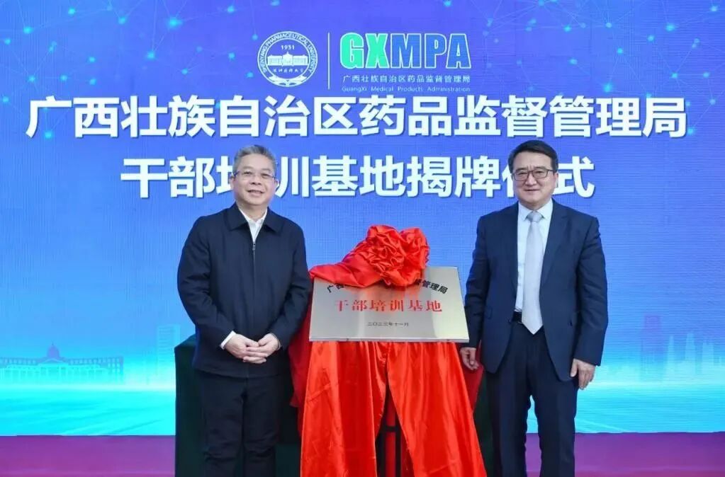 程卯生和黄琛共同为广西药监局干部培训基地揭牌